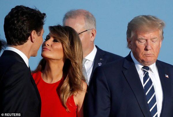 First Lady Melania Trump also puckered up, kissing Canadian Prime Minister Justin Trudeau.